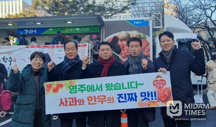 미담타임스 김준완 기자 | 영주시는 지난 3일 서울 강남구청 주차장에서 열린 ‘2026 설맞이 강남구 직거래 장터’에 참가해 영주한우와 영주사과를 선보이며 서울 시민들로부터 큰 관심을 받았다고 밝혔다.