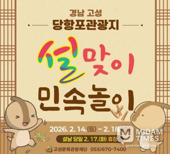 미담타임스 김교환 기자 | (재)고성문화관광재단은 2026년 설 연휴를 맞아 당항포관광지를 찾는 관광객과 고성군민을 위해 ‘2026 당항포관광지 설맞이 민속놀이 체험’ 행사를 운영한다고 밝혔다.