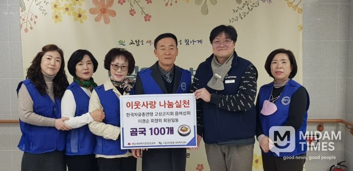 한국자유총연맹 고성군지회 읍여성회 (이경순 회장)는 “설 명절을 맞아 어르신들께 작은 정성을 전하고자 이번 나눔을 준비했다”며 “앞으로도 지역 내 이웃을 위한 나눔과 봉사활동을 지속적으로 이어가겠다”고 전했다.