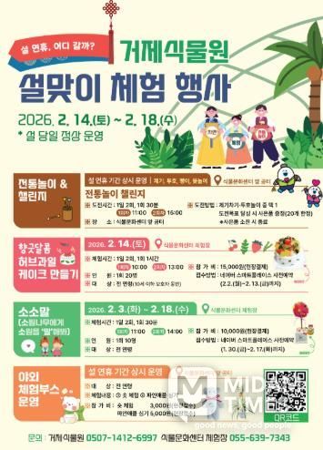 미담타임스 김교환 기자 | 거제식물원이 2026년 설 명절을 맞아 가족 단위 방문객들이 자연과 함께 명절의 정취를 느낄 수 있도록 다채로운 ‘설맞이 체험 행사’를 운영한다.