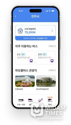 특히 진주시는 ‘티머니GO’에 ‘진주형마스’ 전용 페이지를 만들어 누구든지 진주시에 있는 교통수단을 간편하게 이용이 가능할 뿐만 아니라 주요 관광지와 교통 정보도 얻을 수 있다. 전국 최초로 교통수단 간의 환승 시에 환승 마일리지 적립도 가능한 전국 단위로 플랫폼에 기반한 광역 환승 할인제도를 실시하고 있다.