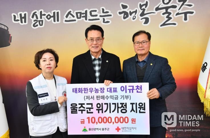미담타임스 김준완 기자 | 이규천 태화한우농장 대표가 5일 울주군 위기가정을 돕기 위해 성금 1천만원을 전달했다.