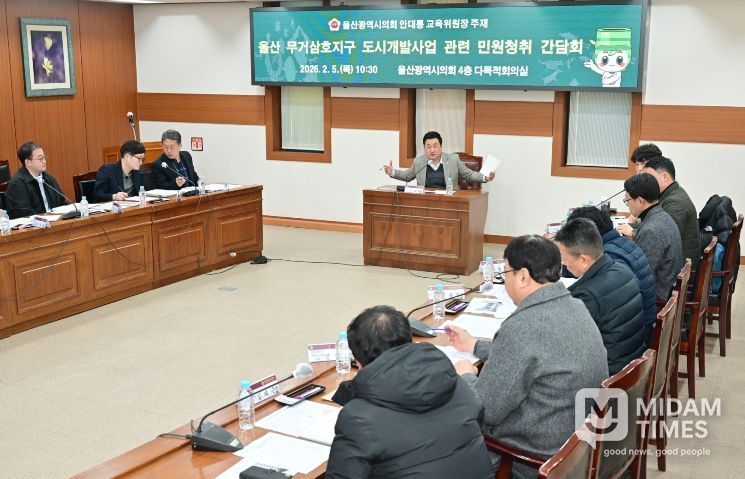 미담타임스 김준완 기자 | 울산광역시의회 교육위원회 안대룡 위원장(삼호동, 무거동)은 5일 시의회 4층 다목적 회의실에서 무거·삼호지구 공사 현장 인근 문수비스타동원 입주민들과 함께 입주 완료 이후 발생하고 있는 생활환경 피해 민원 청취 간담회를 개최 했다.
