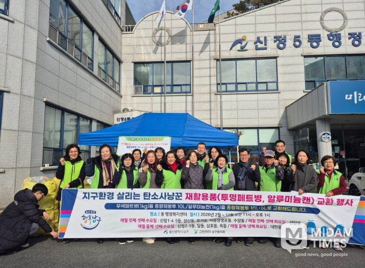 미담타임스 김준완 기자 | 울산 남구는 14개 동 행정복지센터에서 그린리더남구협의회 주관으로 투명 페트병과 알루미늄 캔을 쓰레기 종량제봉투로 교환해 주는 ‘2026년 재활용품 교환사업’을 본격적으로 개시한다고 밝혔다.