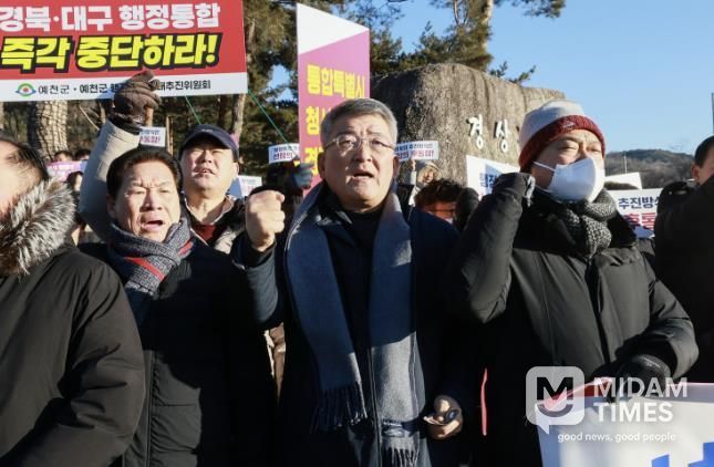 예천·안동 지역 주민들은 2월 9일 오전 8시, 경상북도청 동문에서 ‘대구·경북 졸속 행정통합 규탄 집회’를 개최하고, 행정통합 논의 과정에서 경북 북부권의 역할과 위상이 명확히 보장되지 않은 통합은 불가하다는 입장을 공동으로 표명했다.