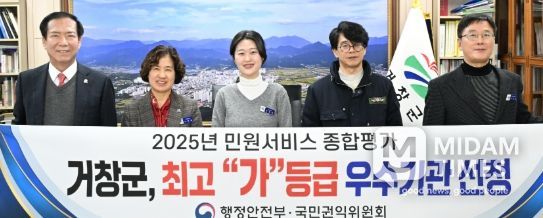 미담타임스 김교환 기자 | 거창군은 국민권익위원회·행정안전부 공동 주관한 ‘2025년 민원 서비스 종합평가’에서 최고 등급인 ‘가등급’에 선정돼 전국 최고 수준의 민원 서비스를 인정받았다.