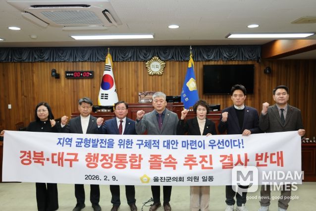 미담타임스 김준완 기자 | 울진군의회는 2월 9일 본회의장에서 경북·대구 행정통합 졸속 추진에 대한 강력한 반대 입장을 담은 성명서를 발표했다.