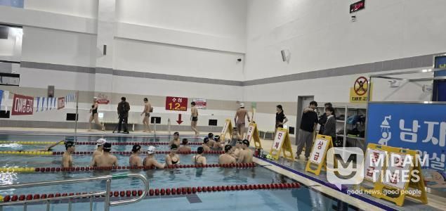 미담타임스 김준완 기자 | 2월 9일 상주시 제2국민체육센터에서 대구체육중고등학교 학생들 20명 내외의 수영훈련이 실시됐다.