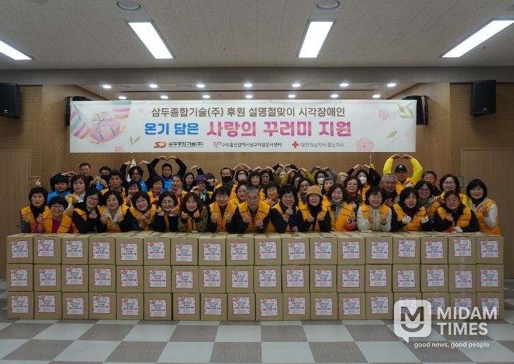 이날 행사에는 자원봉사자와 삼두종합기술 임직원 70여명이 참가해 떡국떡, 즉석국, 참기름, 견과류, 참치세트, 라면, 바디워시 등 총 13종의 생필품을 직접 포장한 후 울산시시각장애인 복지관을 이용하는 시각장애인 100세대에 전달하며 이웃사랑을 실천했다.