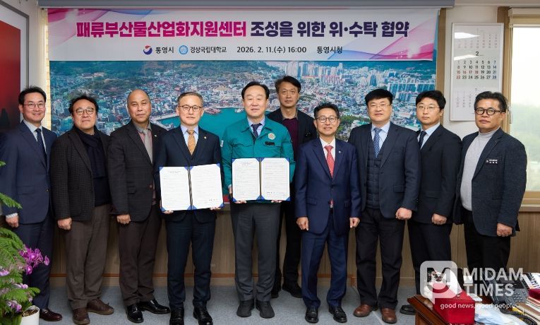 미담타임스 박민정 기자 | 경상국립대학교(GNU·총장 권진회)와 통영시(시장 천영기)는 2월 11일 오후 통영시 시장실에서 굴·가리비·전복 등 패류부산물을 체계적으로 처리하고 이를 고부가가치 상품으로 개발하기 위해 ‘패류부산물 산업화 지원센터’ 조성 업무협약을 체결했다.