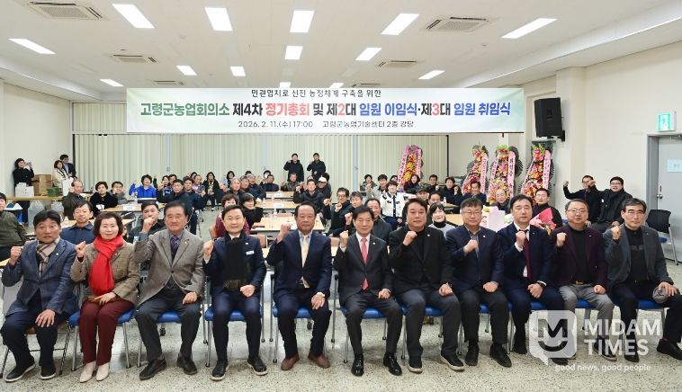 미담타임스 김준완 기자 | 고령군농업회의소는 2월 11일 18시, 고령군농업기술센터 대강당에서 50여명의 회원과 내빈들이 참석한 가운데 ‘고령군 농업회의소 제2·3대 임원 이취임식’을 개최했다.