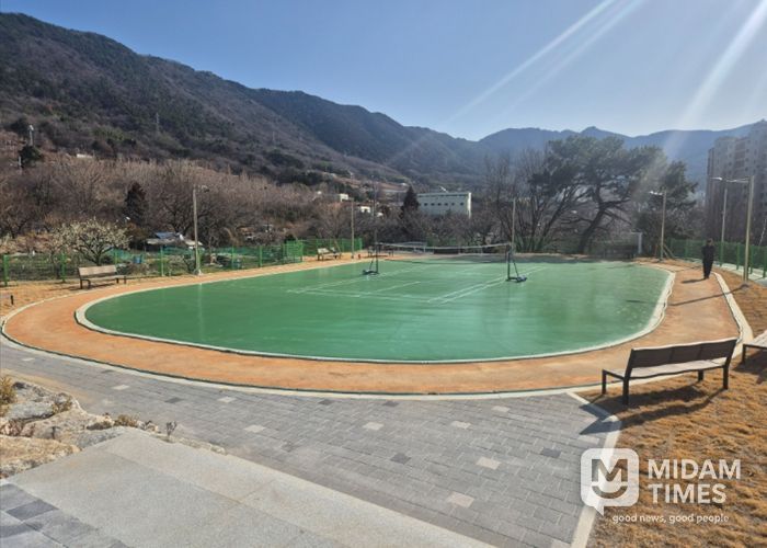 주요 공사내용은 다목적구장 1개소, 운동기구 9종, 맨발걷기길 조성, 세족장, 퍼걸러, 기존 족구장 인조잔디를 교체했고, 작년 8월에 착공하여 6개월 만에 완료하게 됐다.