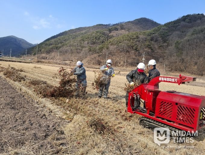 군은 지난 1월 신청 농가를 대상으로 산림재난대응단 소속 산불전문예방진화대를 투입해 고령농 등 32농가의 깻단과 고춧대 등 영농부산물 파쇄 작업을 완료했다.