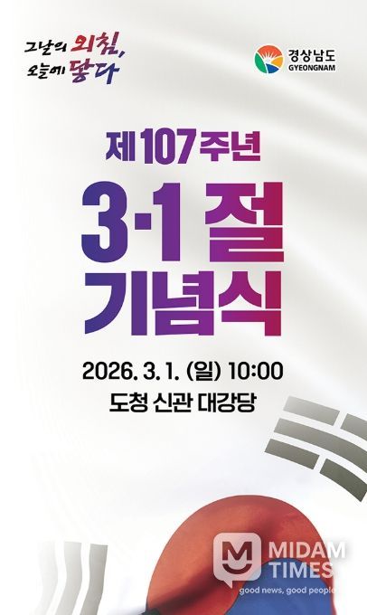 미담타임스 황명수 기자 | 경상남도는 제107주년 3·1절을 맞아 순국선열의 숭고한 희생을 기리고 독립정신을 계승하기 위한 기념식을 3월 1일 오전 10시 경남도청 대강당에서 개최한다.