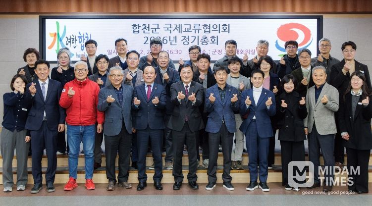 미담타임스 황명수 기자 | 합천군 국제교류협의회(회장 김기종)는 24일 군청 3층 대회의실에서 김윤철 군수와 정봉훈 군의회 의장을 비롯한 국제교류협의회 위원들이 참석한 가운데 2026년 정기총회를 개최했다.