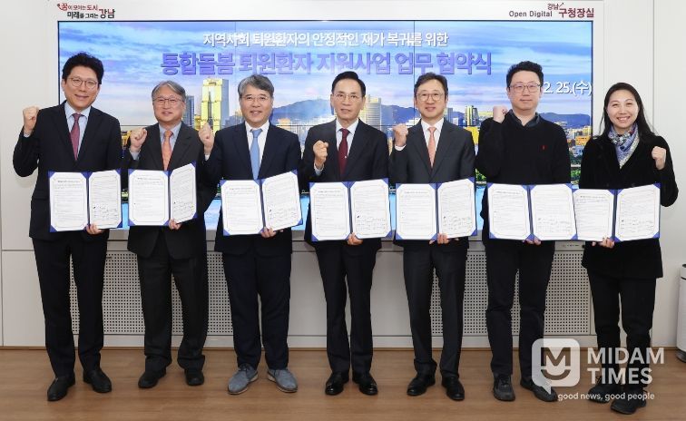 미담타임스 정주환 기자 | 꿈이 모이는 도시, 미래를 그리는 강남구가 퇴원 이후 돌봄 공백을 줄이고 지역사회 중심의 돌봄 체계를 강화하기 위해 2월 25일 구청에서 관내 6개 의료기관과 '통합돌봄 퇴원환자 지원사업' 추진을 위한 업무협약(MOU)을 체결했다. 협약 기관은 삼성서울병원, 연세대학교의과대학 강남세브란스병원, 강남베드로병원, 나누리병원, 메드렉스병원, 강남구립행복요양병원이다.