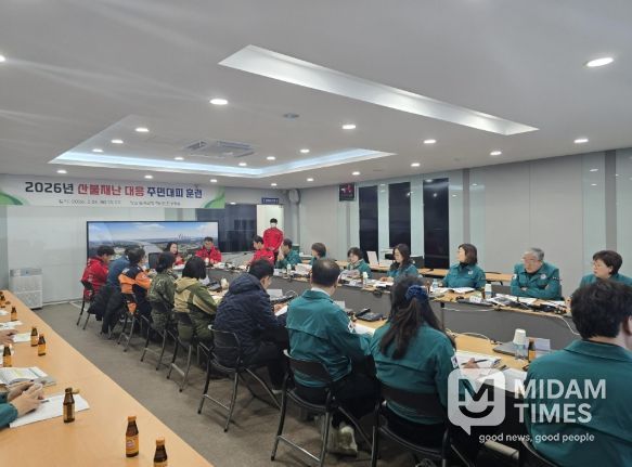 미담타임스 김준완 기자 | 칠곡군은 26일 군청 재난안전상황실에서 산불재난 대응 주민대피 훈련을 실시했다.