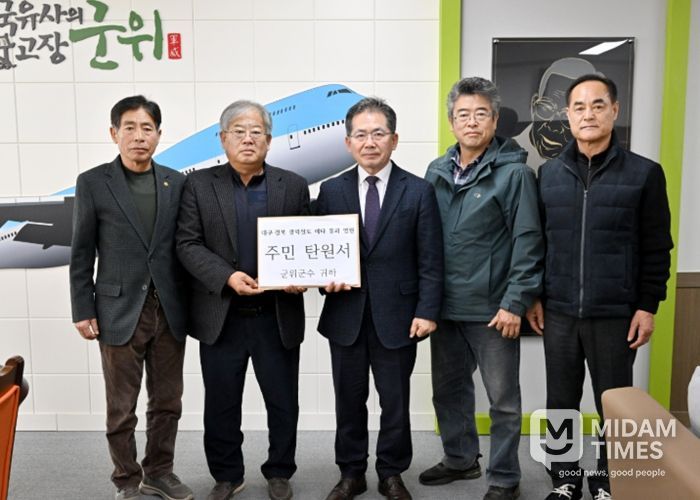 미담타임스 김준완 기자 | 군위군 주민들이 뜻을 모아 대구~경북 광역철도 사업의 조속한 추진을 촉구하는 주민 탄원서 및 서명부를 군위군수에게 제출했다.