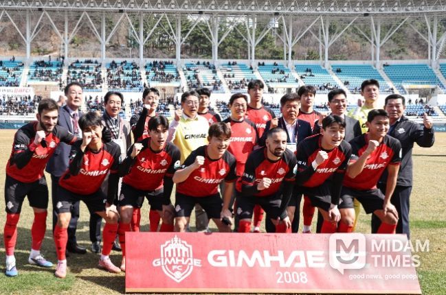 미담타임스 황명수 기자 | 경상남도는 28일 오후 김해종합운동장에서 열린 김해FC와 안산 그리너스의 홈 개막전을 찾아 김해FC의 프로리그 첫 공식 데뷔전을 축하하고 선수단을 격려했다.