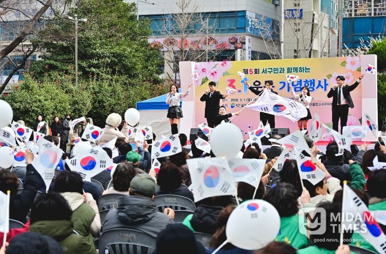 미담타임스 남혜영 기자 | 부산광역시 서구는 지난 3월 1일 동아대학교 부민캠퍼스 중앙광장에서 『제5회 서구민과 함께하는 3·1운동 기념행사』를 성황리에 개최했다. 이번 행사는 제107주년 3·1절을 맞아 독립운동의 숭고한 정신을 기리고, 지역 주민과 미래 세대가 함께 역사적 의미를 되새기기 위한 자리로 마련됐다.