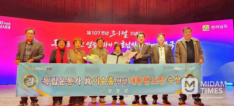 지난 3월 1일 전남도청 김대중강당에서 열린 제107주년 3·1절 기념식에서는 장흥 출신 고(故) 이순흠 선생(1908.2.13.~1985.6.1.)이 독립유공자 대통령 표창을 수상했다.