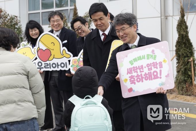 천 교육감은 이날 오전 8시 20분 울주군 서사초등학교를 찾아 등교하는 학생들을 반갑게 맞이했다. 지난 29일 준공한 신설 서사초는 이날 개학식과 입학식을 시작으로 본격적인 학사 운영에 들어갔다.