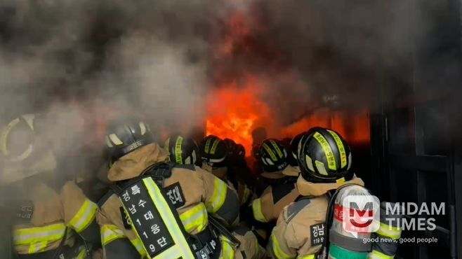 미담타임스 황명수 기자 | 경상남도 소방본부는 3일 경상남도 소방인재개발원 실화재 훈련장에서 119특수대응단 소속 구조대원 31명이 참여한 가운데, ‘특수 화재 및 이상 현상 대응 훈련’을 강도 높게 실시했다고 밝혔다.