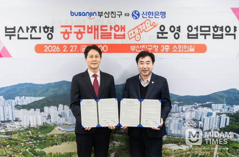 미담타임스 남혜영 기자 | 부산진구는 지난 27일 신한은행과 공공배달앱‘땡겨요’ 운영을 위한 업무협약을 체결했다고 밝혔다.