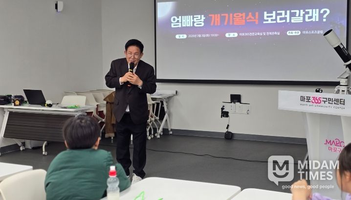 이번 프로그램은 3월 3일 밤하늘에 펼쳐진 개기월식에 맞춰 마련된 특별 관측 행사로, 초등학생 자녀를 둔 마포구 거주 가족 10가구가 사전 예약을 통해 참여했다.
