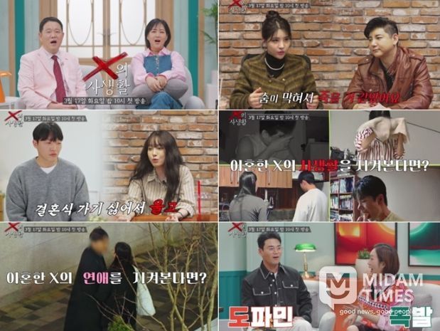 MC로 나선 김구라와 장윤정의 모습도 담겼다. 장윤정은 “(이혼한 X의) 일상은 물론이고 새로운 이성과의 만남까지도 지켜볼 수 있다”는 말과 함께 티저 속 장면을 지켜보며 현실적인 조언과 깊이 있는 공감을 더한다. 특히 장윤정은 이혼한 부부의 사연에 “복잡하다, 복잡해”라며 감정이입하기도 한다. 여기에 패널로 합류한 천록담, 정경미 역시 각기 다른 시선으로 상황을 바라보며 프로그램의 입체감을 더한다.