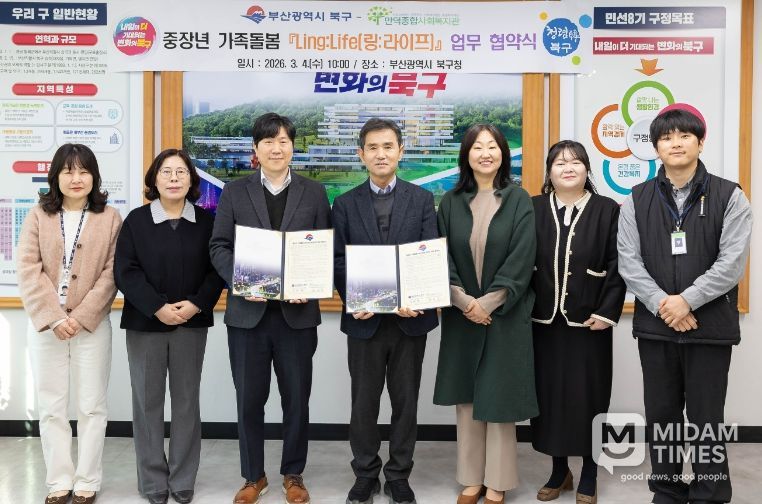 미담타임스 남혜영 기자 | 부산 북구는 4일 만덕종합사회복지관과 가족돌봄 중장년 가구를 지원하는 ‘Ling:Life(링:라이프)’ 사업 추진을 위한 업무협약을 체결했다고 밝혔다.