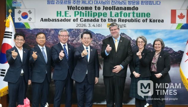 미담타임스 정인화 기자 | 전라남도는 4일 도청 접견실에서 김영록 도지사가 필립 라포르튠(Philippe Lafortune) 주한 캐나다 대사를 접견하고, 두 지역의 미래 신성장 동력 확보를 위한 실질적 교류협력 방안을 논의했다고 밝혔다.