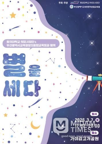 미담타임스 남혜영 기자 | 부산광역시교육청창의융합교육원은 오는 7일 오후 5시부터 부산진구 소재 가야 감고개공원에서 학생, 학부모, 시민 등 700여 명을 대상으로 ‘별을 세다’ 행사를 개최한다.