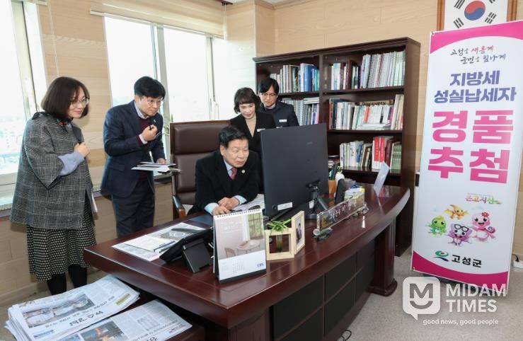 미담타임스 황명수 기자 | 고성군은 3월 4일 군수 집무실에서 지방세를 성실히 납부해 군 재정 확충에 기여한 군민을 대상으로 ‘지방세 성실납세자 경품 추첨’ 행사를 개최했다고 밝혔다.