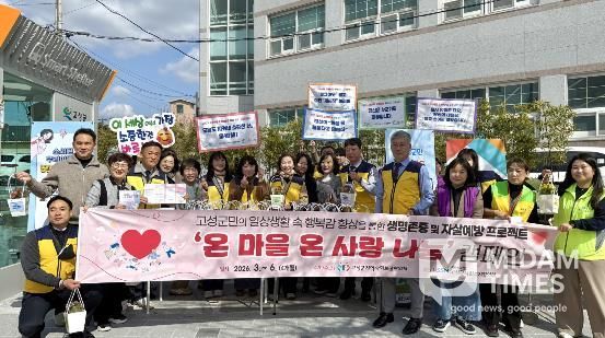 미담타임스 황명수 기자 | 고성군지역사회보장협의체 지역공동체분과와 자살예방분과는 3월 4일 (구)학우사 버스정류장 인근에서 ‘고성군민 행복캠페인’행사를 개최했다.