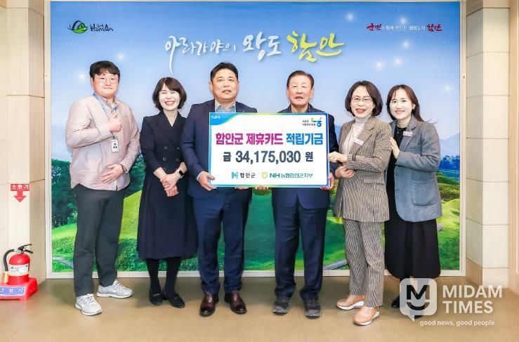 미담타임스 황명수 기자 | 함안군은 지난 4일 엔에이치(NH)농협은행 함안군지부가 지난해 군청 직원과 보조금 지원 단체가 농협 제휴카드를 사용해 적립한 3417만 5000원을 함안군 복지 분야 기금으로 전달했다고 밝혔다.