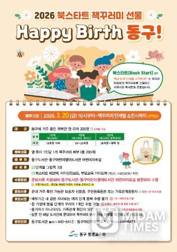 이번 사업은 동구에 주소지를 둔 미취학 영유아를 대상으로 진행되며, 오는 3월 20일 오전 10시부터 단계별 책꾸러미가 소진될 때까지 선착순으로 200개를 배부한다.