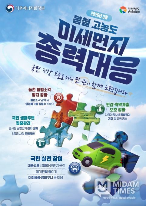 미담타임스 김준완 기자 | 경상남도는 봄철 초미세먼지(PM-2.5) 발생 가능성에 선제적으로 대응하기 위해 3월 한 달간 ‘봄철 초미세먼지 저감 총력 대응’을 추진한다고 밝혔다.