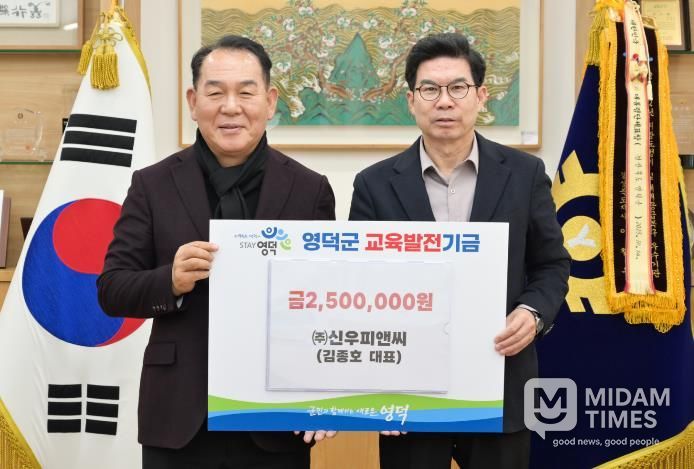미담타임스 김준완 기자 | 섬유제품 제조업체인 ㈜신우피앤씨의 김종호 대표가 지난 3일 영덕군을 찾아 지역교육 개선에 써달라며 교육 발전 기금으로 250만 원을 기탁했다.