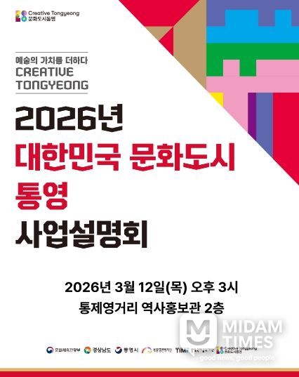 미담타임스 황명수 기자 | (재)통영문화재단은 오는 12일 오후 3시 통제영거리 역사홍보관 2층 시청각실에서‘2026년 대한민국 문화도시 통영’사업설명회를 개최한다.