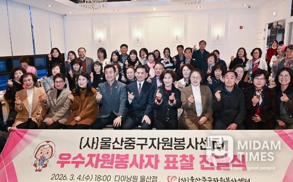 미담타임스 김준완 기자 | (사)울산중구자원봉사센터가 지난 3월 4일 오후 6시 다이닝원 울산점에서 우수 자원봉사자 표찰 전달식을 개최했다.