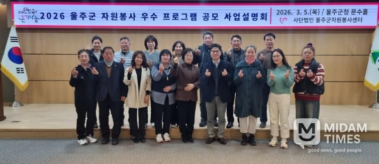 미담타임스 김준완 기자 | 울주군자원봉사센터가 5일 울주군청 문수홀에서 자원봉사단체 관계자 40여명이 참석한 가운데 ‘2026 울주군 자원봉사 우수프로그램 공모’ 사업설명회를 개최했다.