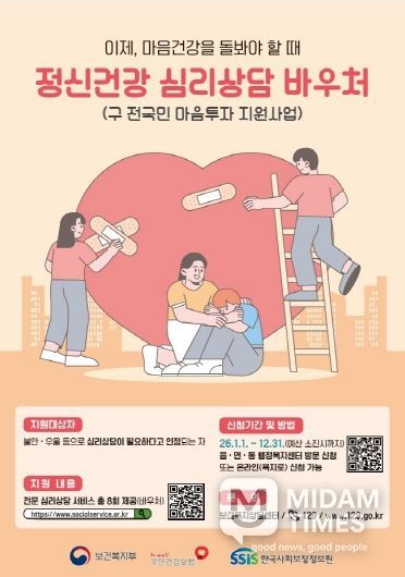 미담타임스 김준완 기자 | 포항시는 우울과 불안 등 정서적 어려움을 겪는 시민들을 위해 지난해에 이어 올해도 전문 심리상담 서비스를 지원하는 ‘정신건강 심리상담 바우처 사업’을 추진한다고 밝혔다.