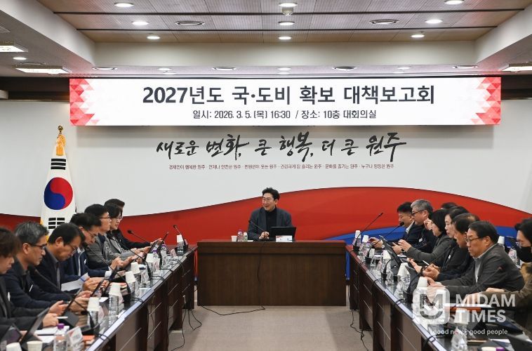 미담타임스 정인화 기자 | 원주시가 내년도 국도비 예산 9,200억 원을 확보하기 위한 본격적인 행보에 나섰다. 시는 5일 오후 4시 30분, 시청 10층 대회의실에서 ‘2027년도 국도비 확보 대책보고회’를 개최하고, 핵심 현안 사업을 추진하기 위한 예산 확보 총력전에 돌입했다.