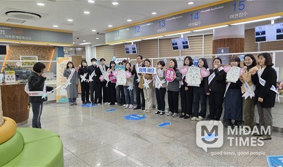 이번 캠페인은 행복민원실 직원 20여 명의 참여로 실시됐으며, 민원실을 찾는 시민들이 보다 친절한 응대를 통해 만족스러운 민원서비스를 받을 수 있도록 공무원의 서비스 마인드를 제고하기 위한 취지로 마련됐다.