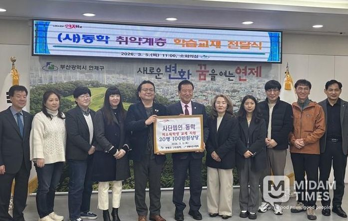 미담타임스 남혜영 기자 | 연제구는 지난 3월 5일, 사단법인 동학(이사장 남중현)으로부터 관내 저소득 취약계층 세대 지원을 위한 학습교재를 전달받았다.