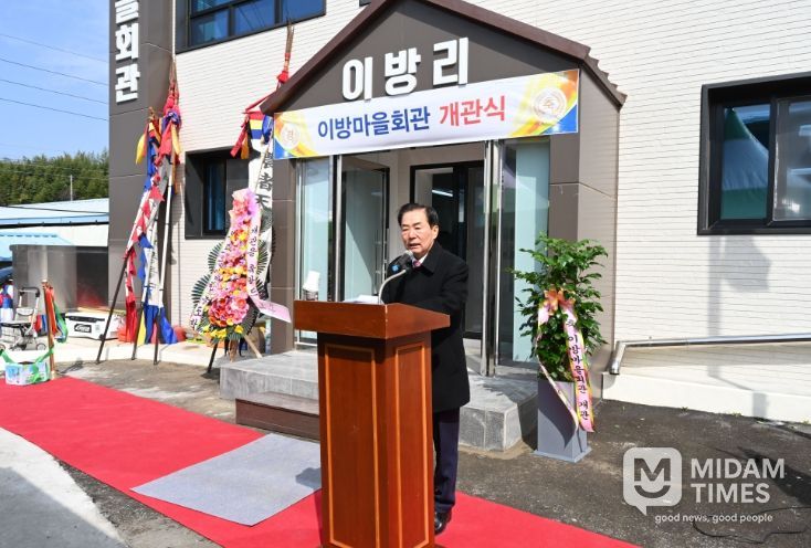 성낙인 군수는 “새롭게 단장한 이방 마을회관이 주민 모두의 사랑방으로서 이웃 간의 정을 나누고 마을의 화합과 발전을 이끄는 활력 넘치는 공간으로 자리 잡기를 기원한다”고 전했다.