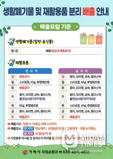 미담타임스 황명수 기자 | 거제시는 생활폐기물의 올바른 배출 문화를 정착시키고 깨끗한 도시환경을 조성하기 위해‘생활폐기물 분리·배출 도우미’를 채용·운영하고 올해부터 불법 배출 쓰레기에 대한 단속과 과태료 부과도 강화할 방침이다.
