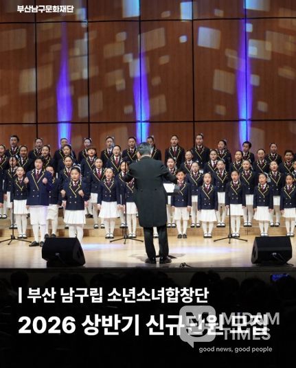 미담타임스 남혜영 기자 | (재)부산남구문화재단은 남구립 소년소녀합창단의 신규 합창단원을 2026년 3월 3일부터 3월 17일까지 모집한다고 밝혔다.