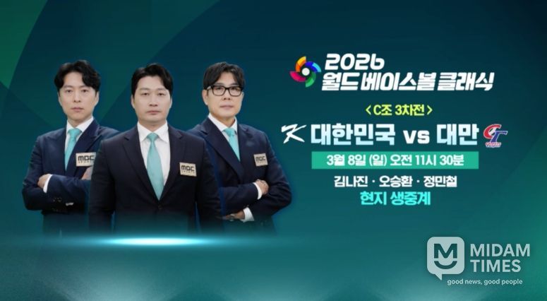 한편, MBC는 오늘(8일) 오전 11시 30분부터 일본 도쿄돔에서 열리는 WBC 본선 1라운드 대한민국과 대만의 경기를 오승환, 정민철 해설위원과 김나진 캐스터의 진행으로 현지 생중계한다.